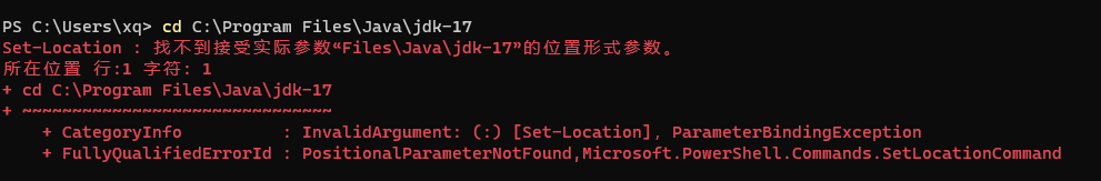 cd Program Files报错 :Set-Location : 找不到接受实际参数“Files”的位置形式参数
